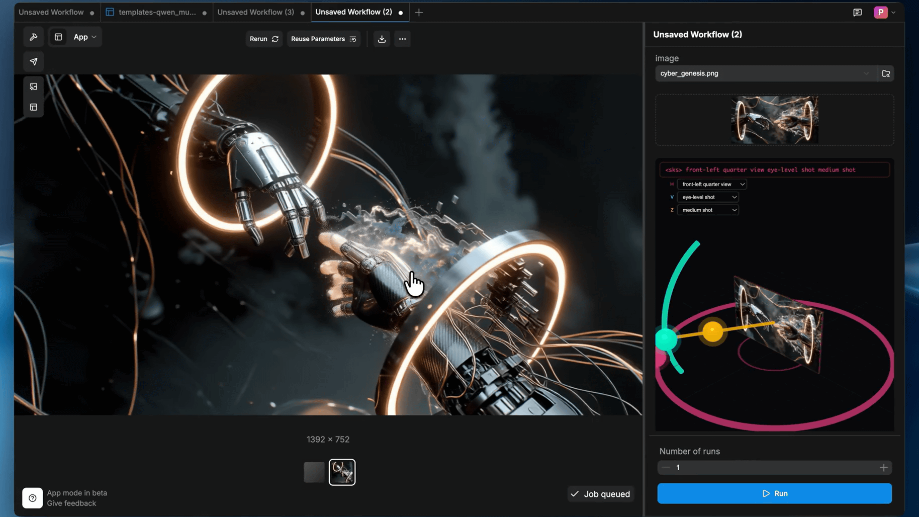 従来のノードベースのインターフェースとは異なり、App Modeでは、あらかじめ用意されたテンプレートやプリセットを使用することで、簡単に画像生成を実行できます。